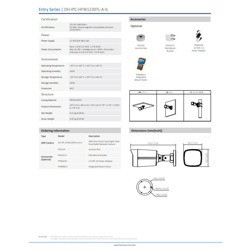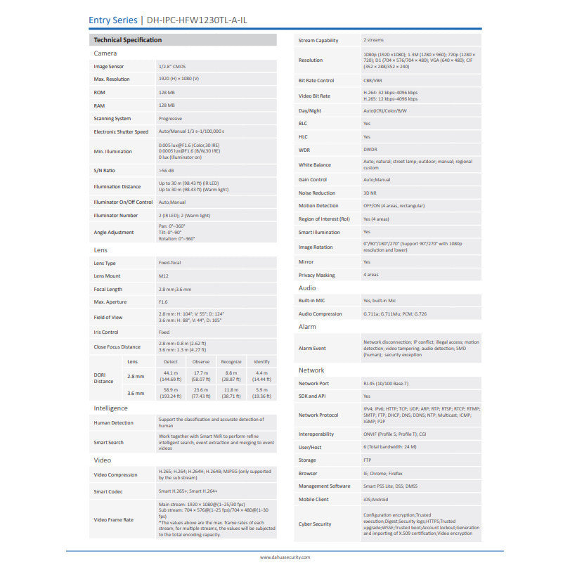 ชื่อ DAHUA DH-IPC-HDW1239V-A-IL-3.6mm 2MP Smart Dual Light Fixed-focal Bullet Network Camera