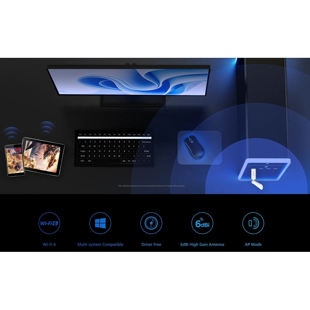 Tenda U2 ตัวรับสัญญาณ WiFi 6 AX300 High Gain Wireless USB Adapter (U2) ประกันศูนย์ 4 ปี