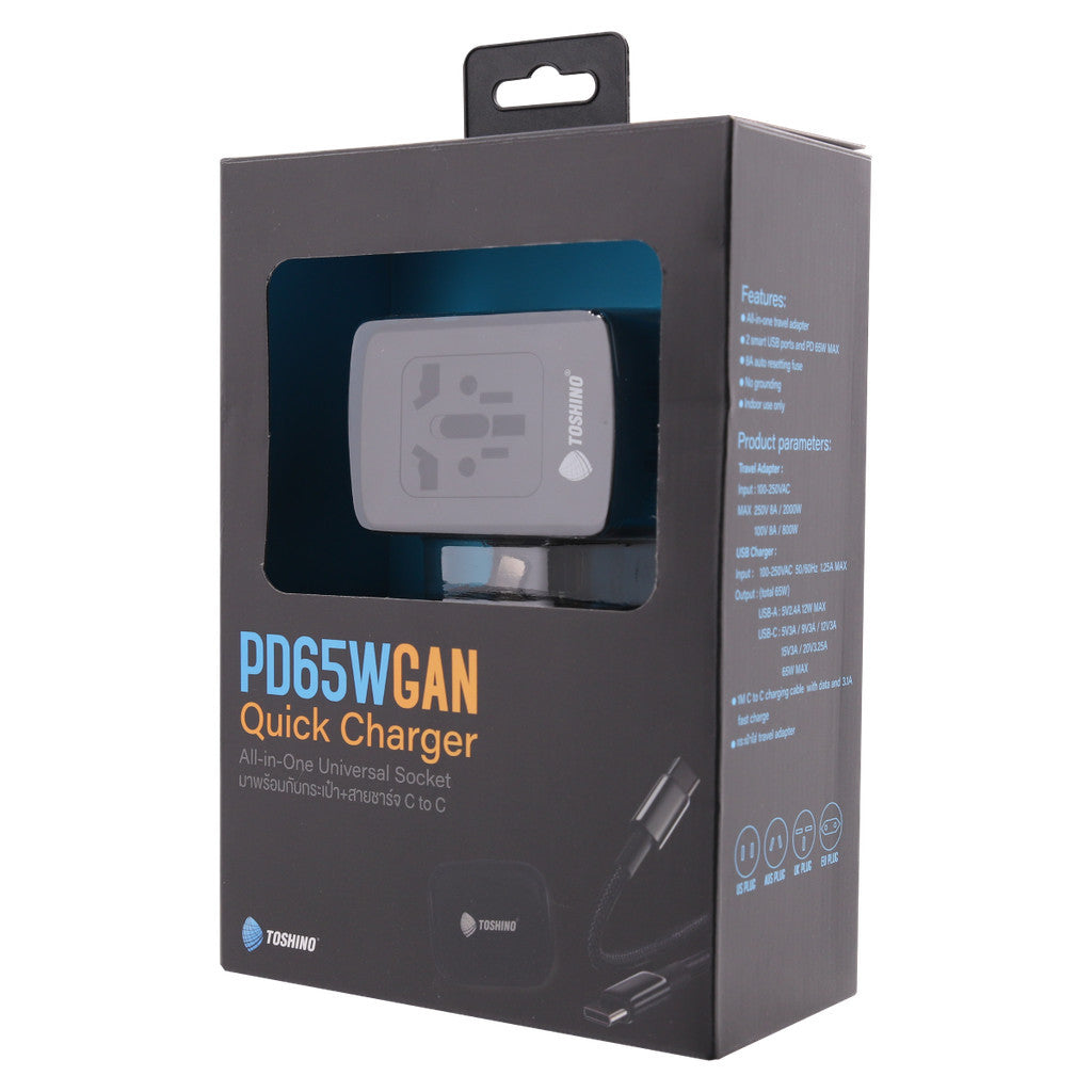 ชื่อ Toshino ปลั๊กแปลง3in1 PD65WGAN รุ่น DE-65WGAN รับประกัน 1 ปี