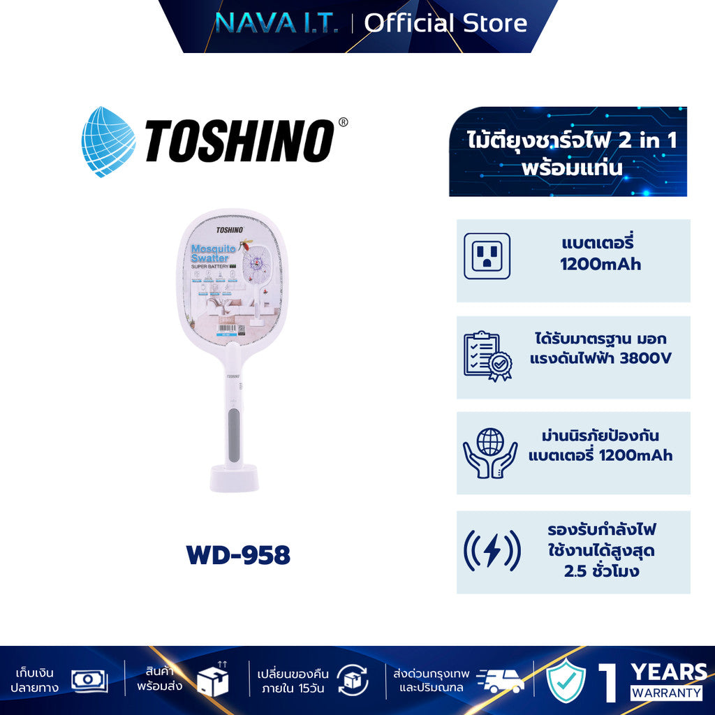 ชื่อ TOSHINO WD-958 ไม้ตียุงถอดชาร์จไฟ 2 IN 1 มีเเท่น สินค้ารับประกัน 1 ปี